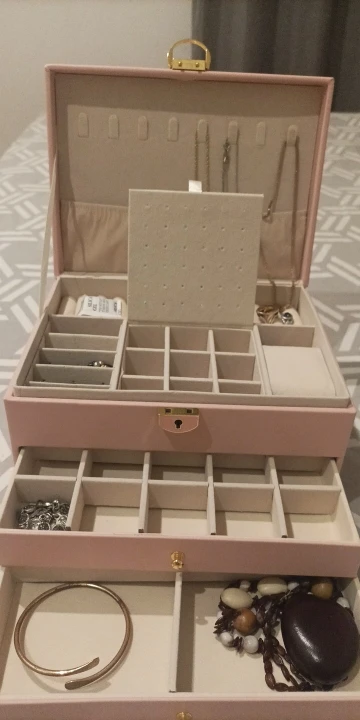 Experience the convenience of organized jewelry storage with a beautiful design. Say goodbye to cluttered countertops and hello to a sleek and tidy jewelry display. Enjoy quick, and effortless access to all your jewelry with a safe way to store all of your expensive accessories at home or during travels.